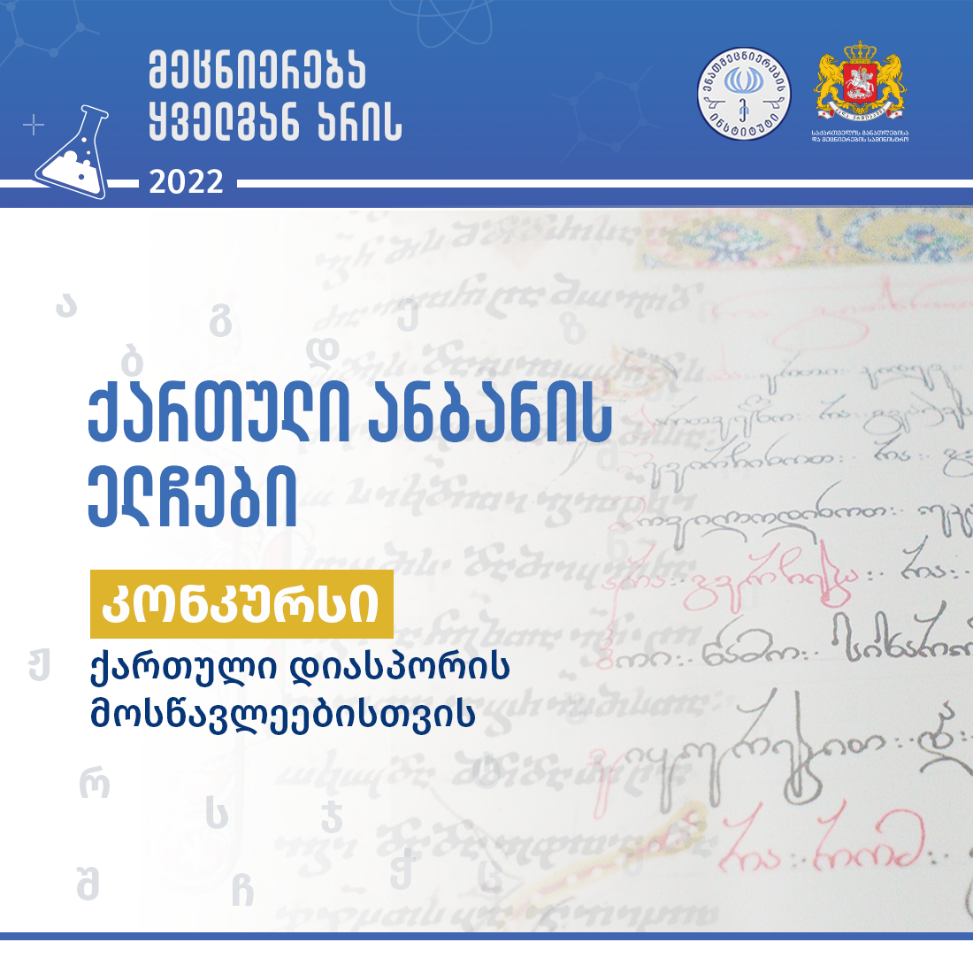 საქართველოს განათლებისა და მეცნიერების სამინისტროს მეცნიერების პოპულარიზაციის პროგრამის ფარგლებში, არნოლდ ჩიქობავას სახელობის ენათმეცნიერების ინსტიტუტი ქართული დიასპორის მოსწავლეებისათვის აცხადებს კონკურსს „ქართული ანბანის ელჩები“.