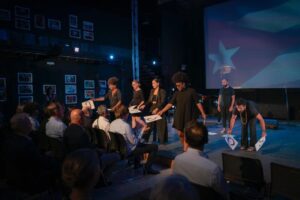 დადგმა მიჰყავდა მთხრობელს ქართული მუსიკალური ნაწარმოებების საფორტეპიანო შესრულების თანხლებით, მაყურებლისთვის იხატებოდა ქართული ანბანი, რომელიც დასასრულს დარიგდა დარბაზში.